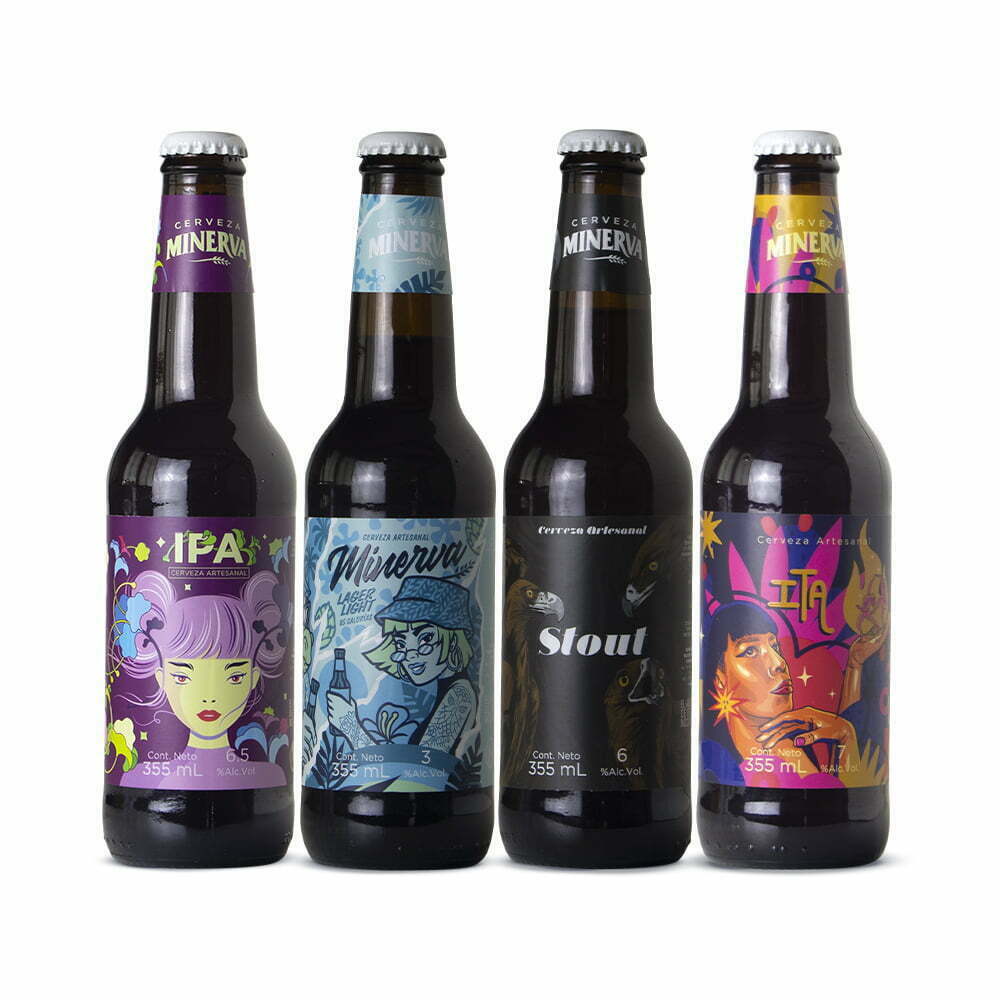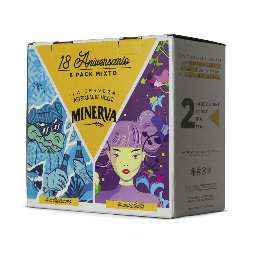 Minerva ¡llega a su mayoría de edad! Estamos súper orgullosos de estos 18 años siendo la Cerveza Artesanal de México y queremos celebrarlo a lo grande de la mano de todos aquellos que nos han acompañado a lo largo de estos años. Tus Minervas favoritas con etiquetas edición especial diseñados de 4 grandes artistas. 2 Stout 2 IPA 2 Lager Light 2 ITA