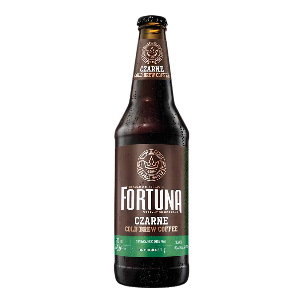 La cerveza Fortuna Czarne es una experiencia única para los amantes tanto de la cerveza como del café. Integrando la técnica del cold brew, esta cerveza oscura polaca presenta un matrimonio perfecto entre la riqueza del café y la suavidad de una cerveza artesanal. De color negro profundo y con una espuma marrón y consistente, ofrece aromas intensos de café recién molido, con matices de chocolate y toffee. En boca, el sabor del café domina suavemente, complementado por notas de malta tostada y un leve amargor que recuerda a los granos de café tostados, terminando con un cuerpo completo y una sensación en boca que es robusta pero accesible.