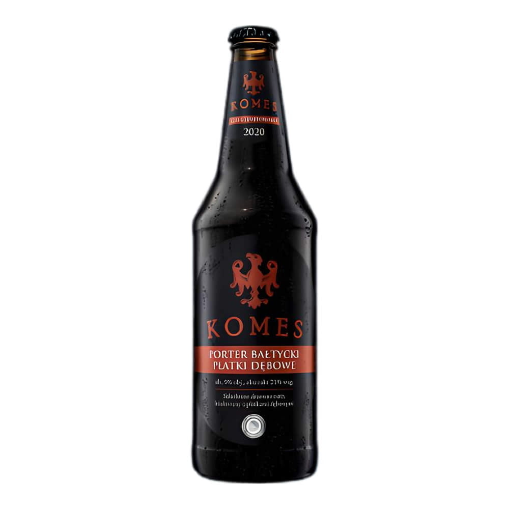 Komes Porter Bałtycki Płatki dębowe es una cerveza oscura de fermentación baja que debe su perfil complejo y rico a las maltas tostadas y al almacenamiento con hojuelas de roble francés. El aroma y el sabor de la cerveza combinan notas de chocolate y café con toques de madera noble.