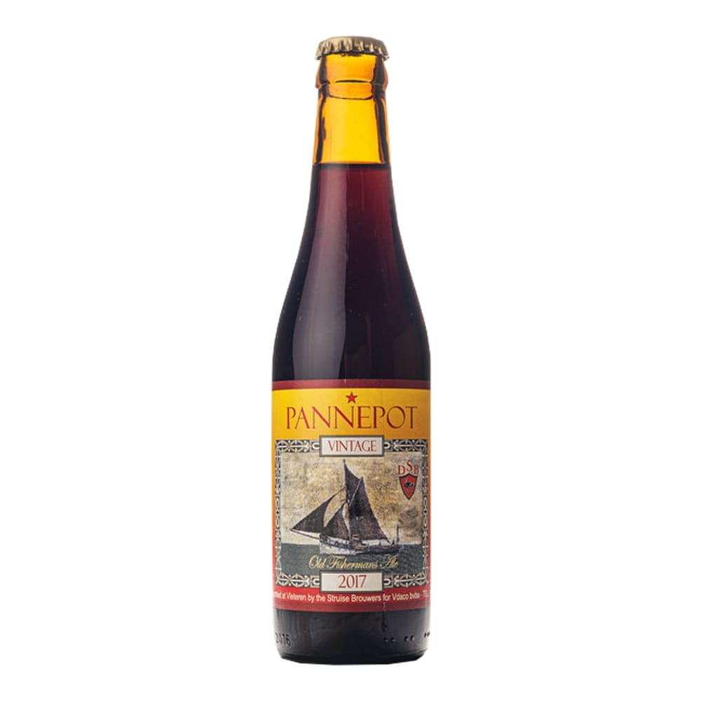 Struise Pannepot Vintage es una Belgian Strong Dark Ale que rinde homenaje a los antiguos pescadores de la región de Flandes, Bélgica. Con un 10% ABV, esta cerveza oscura y compleja presenta un color marrón profundo con reflejos caoba y una espuma beige cremosa que perdura. Al acercar el vaso, se perciben intensas notas de caramelo, ciruelas pasas, higos, toques de chocolate oscuro y especias como canela y clavo.