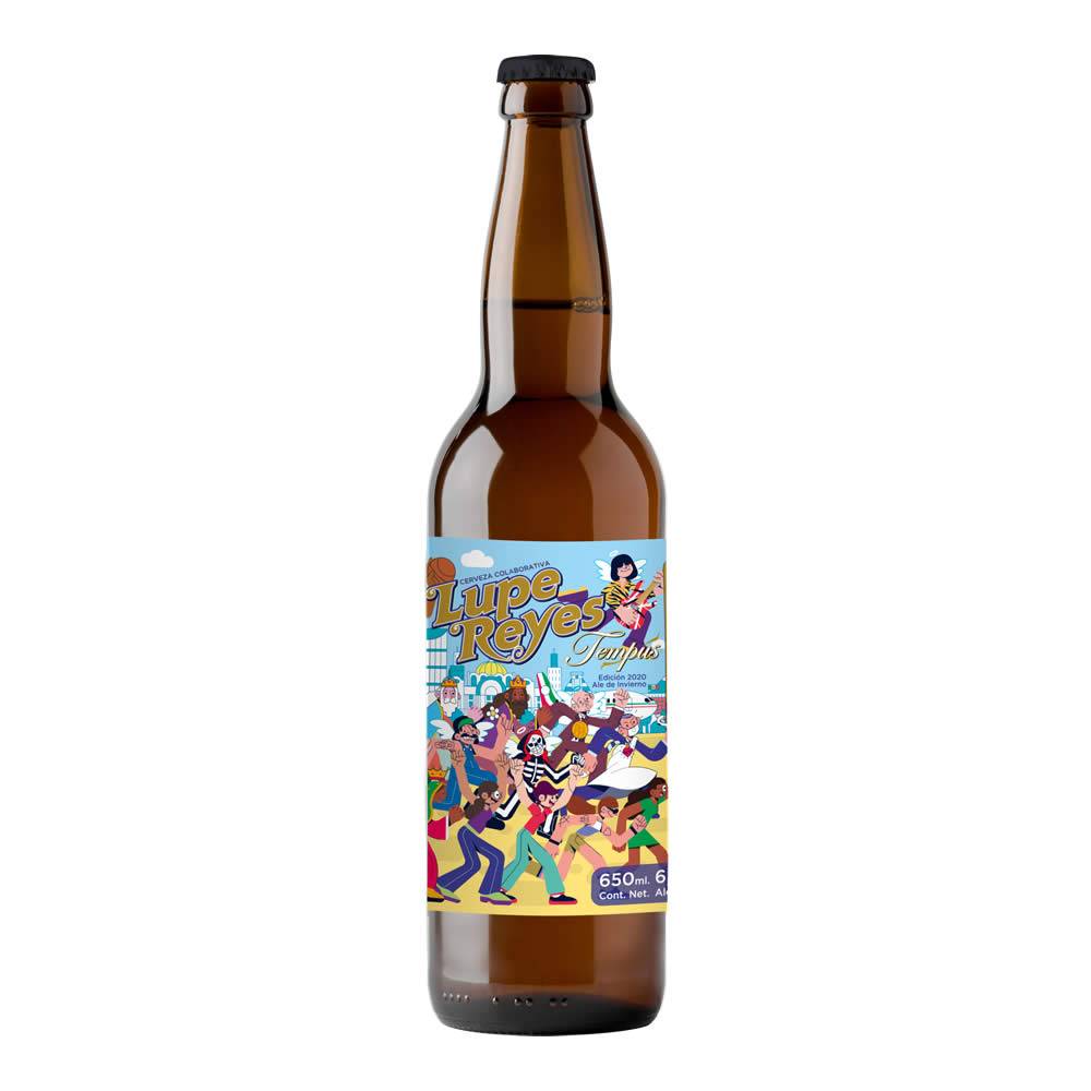 Color cobrizo. Llegó el maratón favorito de todos y con él la 10a edición de la cerveza navideña Tempus Lupe Reyes. Cerveza colaborativa con nuestros amigos Miky Huidobro de Cerveza Saque Mate y el reconocido ilustrador Mr. Kone.